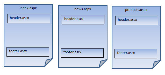 2: <%@ register src="footer.ascx" tagname="footer" tagprefix="my" %>