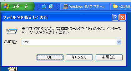 「ファイル名を指定して実行」に cmd と入れて OK をクリック。