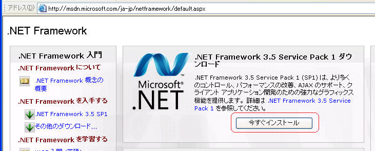 .NET Framework デベロッパー センター にアクセスして .NET Framework 3.5 SP1 をインストールしましょう。